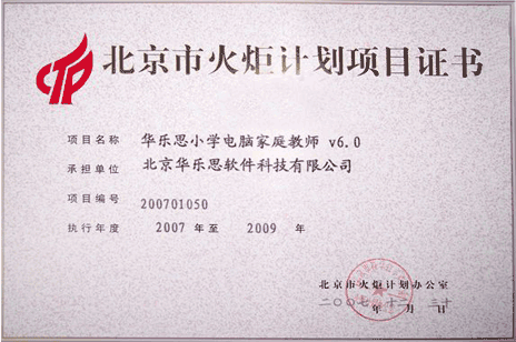 华乐思小学电脑家庭教师荣获"北京市火炬计划项目"